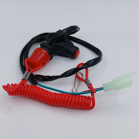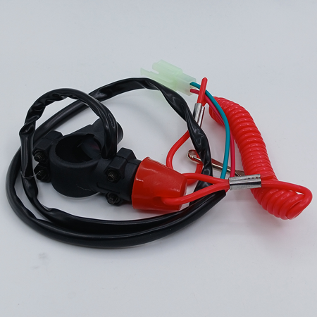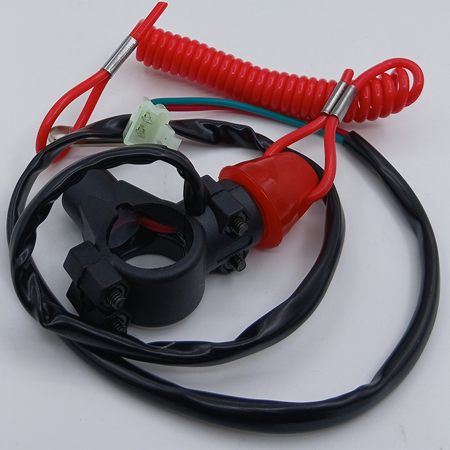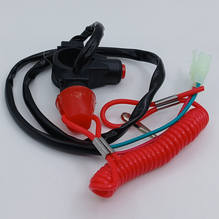 Чека безопасности для детского квадроцикла, мотоцикла с аварийной кнопкой выключения зажигания. Отключение зажигания происходит при выдергивании красной чеки безопасности с ее основания или при нажатии красной кнопки под самой чекой.