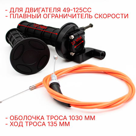 Ручка газа (с тросом и левой грипсой) 49-125сс с плавным ограничителем скорости