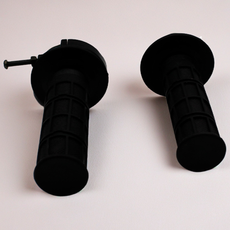 Ручка газа с плавным ограничителем для детского питбайка, мотоцикла, детского или подросткового квадроцикла с рабочим объемом двигателя 49-125 куб.см. В комплекте ручка газа с ограничителем, парная левая ручка и трос газа с натяжителем. Длина ручки (грипсы) 120 мм, длина рубашки троса 1030 мм, ход тросика газа 135 мм. Устанавливается на руль диаметром до 22 мм.