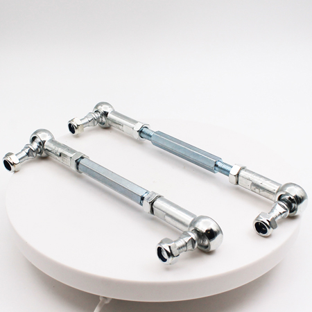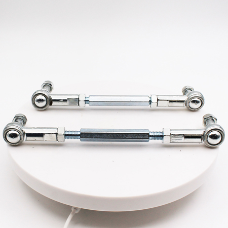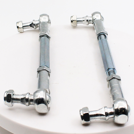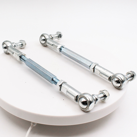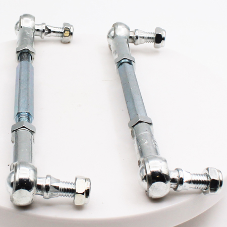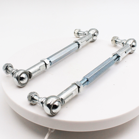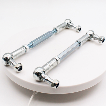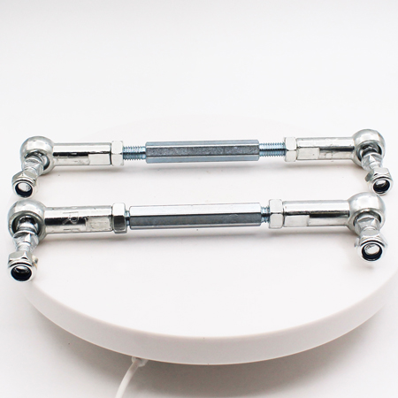 Рулевые тяги для детского квадроцикла. Комплект из 2 шт. Длина тяги регулируемая 150-183 мм (по центру крепежных болтов), длина центральной части без рулевых тяг - 110 мм, под отверстие 8 мм.