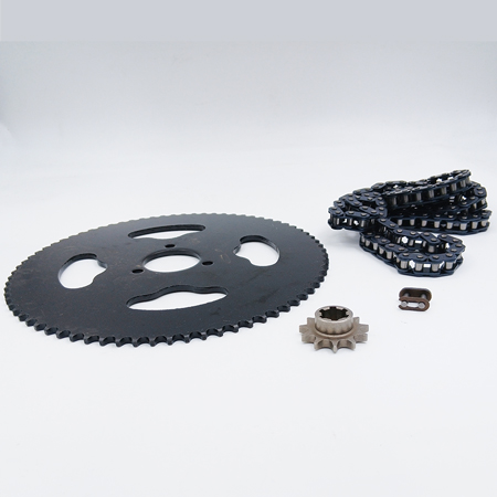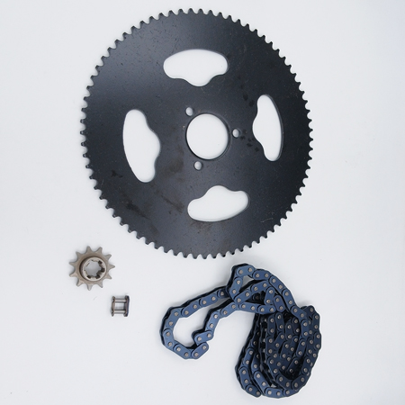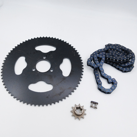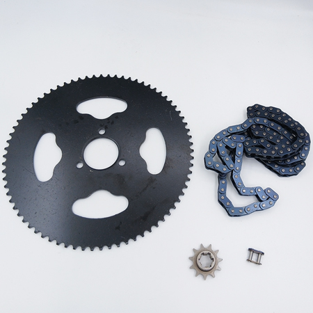 Понижающий комплект цепь T8F 166 звеньев + ведущая звезда T8F 11T + ведомая звезда T8F 74T 35 мм для детского бензинового мотоцикла 49сс 2Т