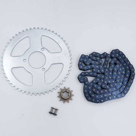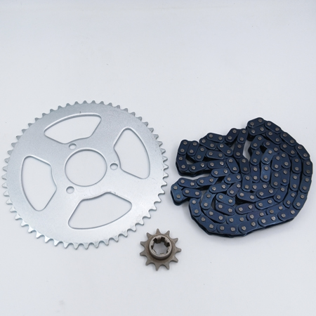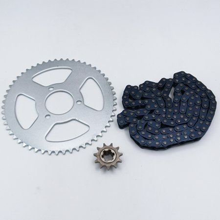 Стандартный комплект цепь T8F 134 звеньев + ведущая звезда T8F 11T + ведомая звезда T8F 54T 35 мм для детского питбайка 49сс 2Т
