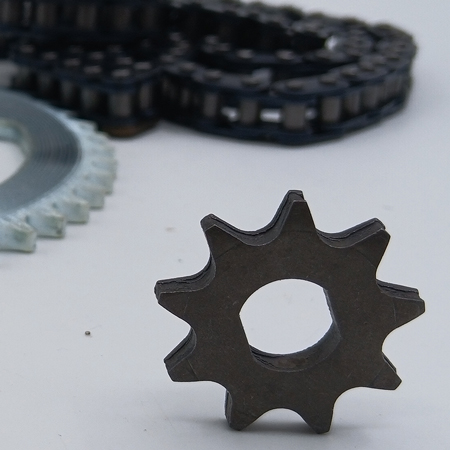 Усиленный комплект цепь T8F 98 звеньев + ведущая звезда T8F 9T + ведомая звезда T8F 54T 29 мм для детского электрического квадроцикла